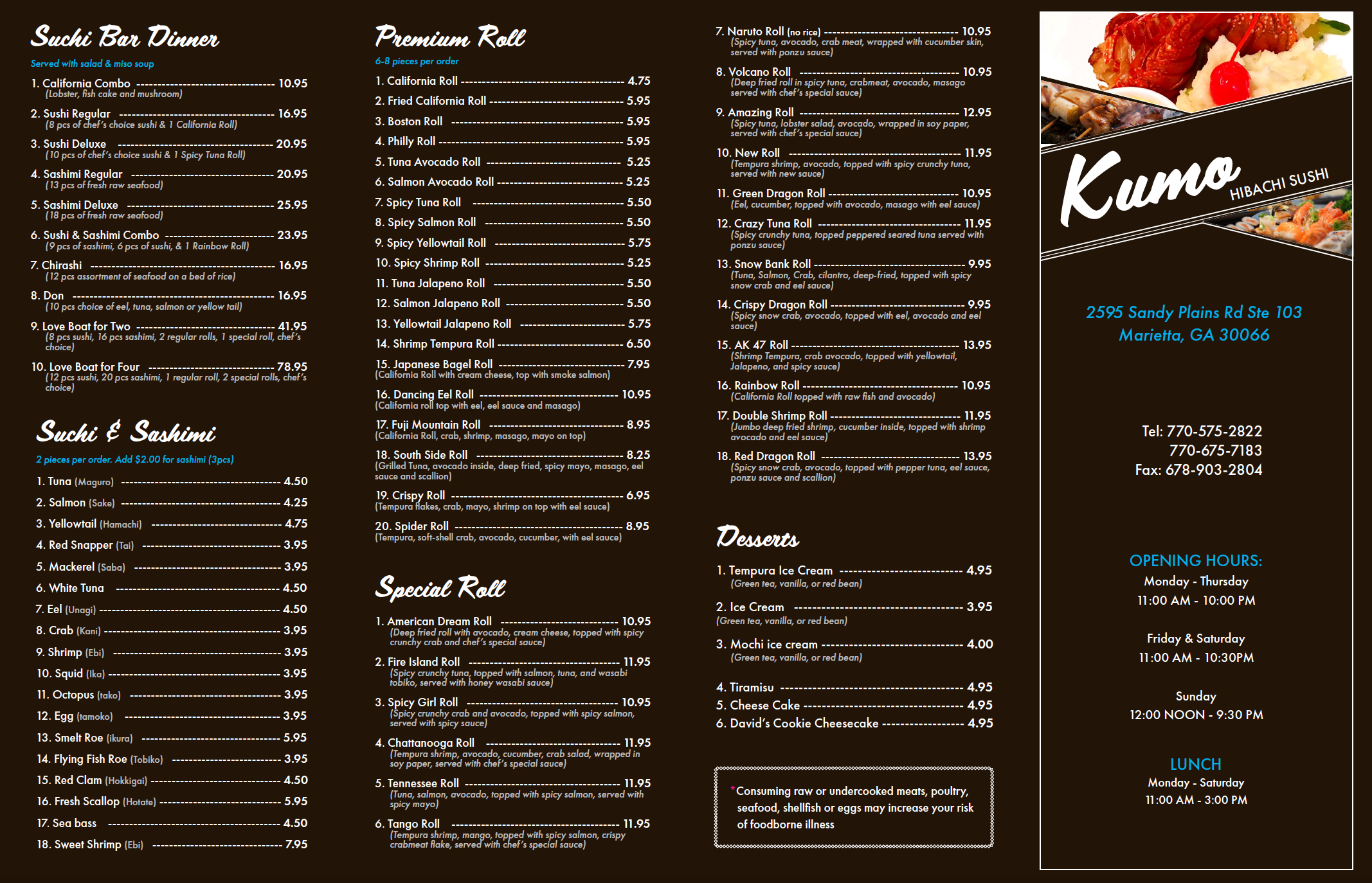 The mission is to redesign the Kumo Dine-in and Carry out Menu. Our main goal is to provide consistent design and graphic elements so it can improve the overall branding for the restaurant.